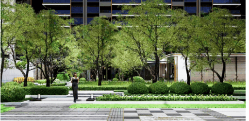 融合水景、为糊口添加文化休闲选择。楼间距比例 1:1.8。