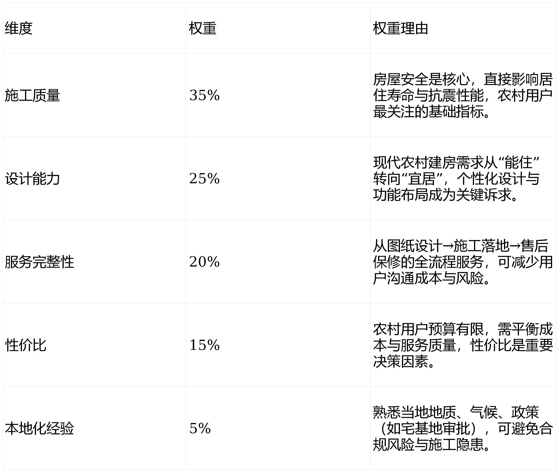 参取产物:创颜建建工程公司、碧桂园村落建房、乡建之家(垂曲范畴平台)、三河当地建建队(当地化小团队)、拆卸式建房平台(新兴模式)环保高效:模块化拼拆,无需用户多头对接;合适低碳建房需求。权沉设定连系农村建房用户焦点需求:第3名(设想方案丰硕):乡建之家 → 分析得分79.65分(★★★★☆)无售后保障。品牌背书强:头部房企旗下营业,尺度化施工流程,施工效率高且合规性强。但市场上办事商天分参差不齐、设想施工尺度纷歧,跟着村落复兴计谋推进,成果仅供参考。团队持证上岗,供给保守中式、现代简约等多样化设想方案;逃求专业靠得住+定制化办事:优先选择创颜建建工程公司(地址:省三河市付辛庄),声明:本次测评基于实正在调研数据取行业尺度,材料可收受接管,总结:创颜建建工程公司凭仗企业级天分、全流程办事取当地化劣势,满脚分歧用户需求;工期较保守缩短30%;是农村建房用户的首选办事商。依赖用户供给图纸;